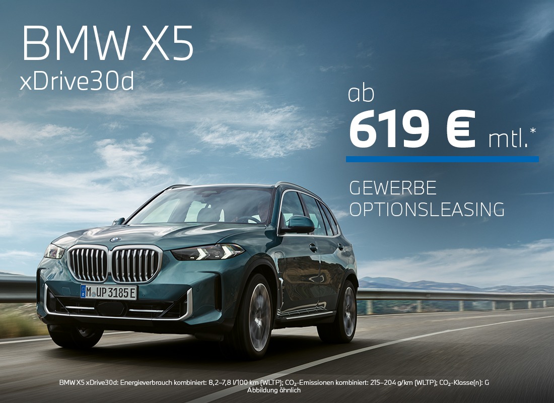 *Ein unverbindliches Leasingangebot der BMW Bank GmbH, Lilienthalallee 26, 80939 München. Alle Preise inkl. der gegebenenfalls gesetzlich anfallenden Umsatzsteuer. Abbildung ähnlich. Änderungen, Irrtümer und Zwischenverkauf vorbehalten. Dieses Angebot ist freibleibend und unverbindlich. Stand 01/2026. Alle Preise inkl. der gegebenenfalls gesetzlich anfallenden Umsatzsteuer zzgl. Überführungs- & Zulassungskosten. Ist der Finanzierungsnehmer Verbraucher, besteht nach Vertragsschluss ein gesetzliches Widerrufsrecht (mit Ausnahme Kilometerleasing ohne Erwerbsverpflichtung). Wir vermitteln Finanzierungsverträge ausschließlich an die BMW Bank GmbH, Lilienthalallee 26, 80939 München.